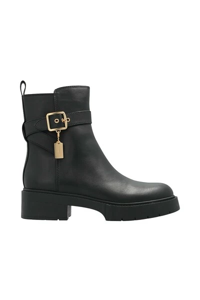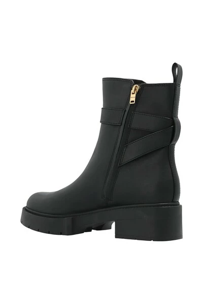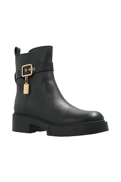 Zwarte ‘Lacey’ enkelschoenen coach. Gemaakt van leer, dit paar heeft een zijkant, verstelbare gesp riem met een logo-gegraveerde sleutelhanging en zwarte rubberen zool.