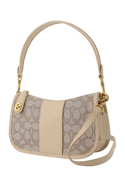 Korte schouderriem: 20,3 cm – lange schouderriem: 54,6 cm. Dragen op twee manieren – twee afneembare schouderbanden. Materiaal: Signature Jacquard. Voeringstof. Kleur: Beige – B4Shg B4/Stone Ivory. Sluiting: bovenste zip. Interieur: geen binnenzak.
