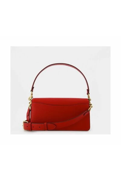 Korte schouderriem: 19,7 cm – lange schouderriem: 54 cm. Dragen op twee manieren – twee afneembare schouderbanden. Materiaal: korrelige kalfsleer. Voeringstof. Kleur: Rouge – B4UP7 B4/BOLD ROOD. Slit zak aan de buitenkant. Sluiting: flap met drukknopjes. Interieur: drie compartimenten, één ritssluiting en één platte zak.