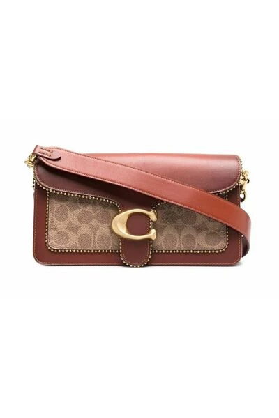 Bruin en beige ‘Tabby 26’ schoudertas van coach. Gemaakt van leer en het kenmerkende gecoate canvas van het merk met een monogram, dit model is compleet met een SNAP-sluiting, metalen logo-applicatie, achterzak, afneembare handgreep en verstelbare schouderriem, goudkleurige metalen hardware en een interne compartiment met één ritszak en Twee slipzakken.