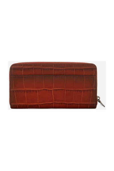 Coach Accordion Croc Portemonnee Terracotta Portemonnee Zip Card Slots Logo Metingen: 20x10x2 cm leer
