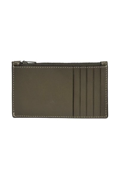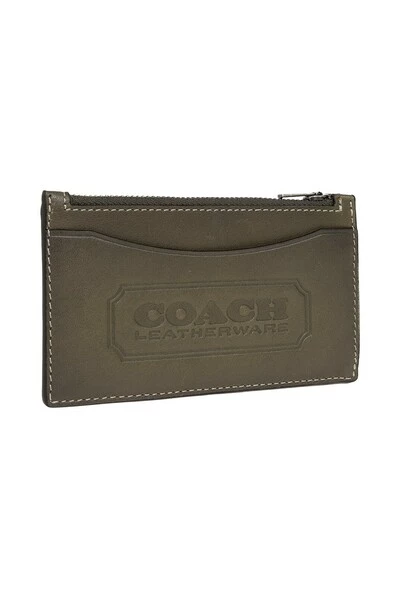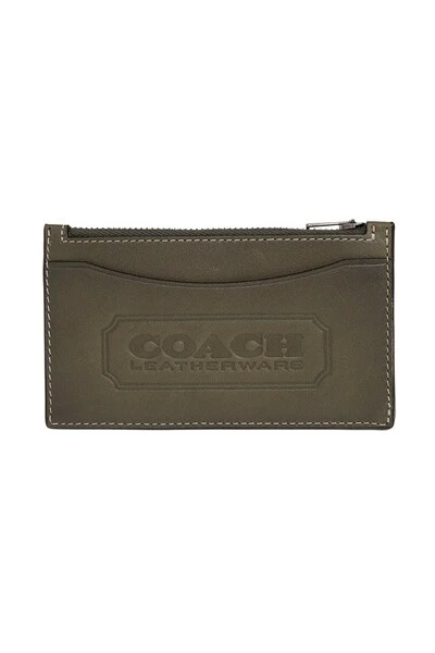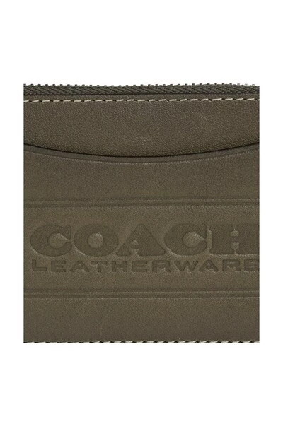 Dark Green Card Holder van Coach. Gemaakt van kalf leer, dit item heeft een reliëflogo, een zip -zak, een slipzak en vijf kaartslots.