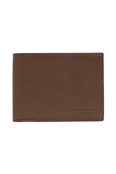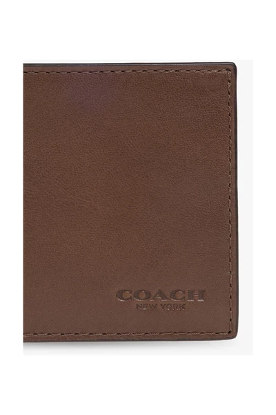Bruine vouwportemonnee van Coach. Gemaakt van kalfsleer met een vintage effect, dit ontwerp heeft een reliëflogo en één factuurcompartiment, twee slipzakken en zes kaartsleuven erin.