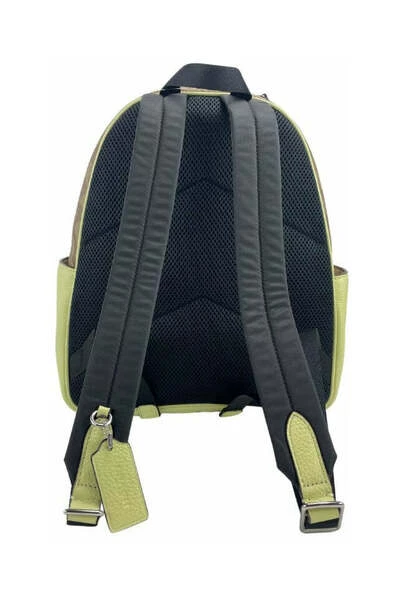 Stijl: Coach Court Backpack (Khaki/Pale Lime) Materiaal: Signature gecoate canvas met kiezelleren trim Kenmerken: verstelbare schouderbanden, binnenste rits en slipzakken, buitenste pocket en zijkantjes, bovengreepmaten: 26,67 cm w x 36,19 cm H x 12,7 cm d