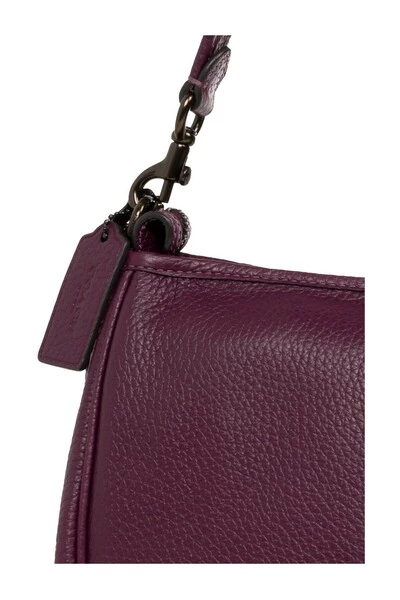 Paarse ‘cary’ schoudertas van coach. Gemaakt van korrelig leer, dit model is compleet met een ritssluiting, afneembare halfronde handgreep en verstelbare schouderriem, afneembaar logo-charme en sleutelhangers, donkere zilverkleurige metalen hardware en een intern compartiment met één snap-fasted zak.