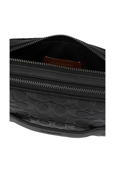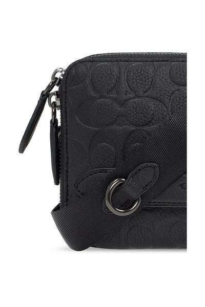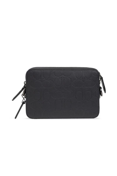 Black Charter schoudertas van coach. Gemaakt van leer, dit ontwerp bevestigt via ritsen en toont een reliëflogo -patroon. Het is compleet met een hendel van een halve ronde, een afneembare en verstelbare schouderriem en twee afzonderlijke interne compartimenten-één heeft een slipzak en zes kaartsleuven.