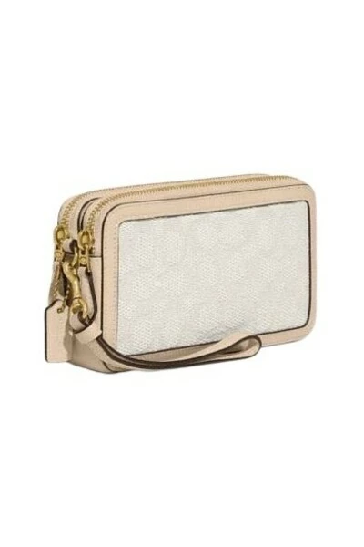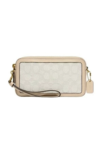 Coach coach tas canvas met het logo van het bedrijf. Lederen tas met een bandiet en om in de hand te dragen.