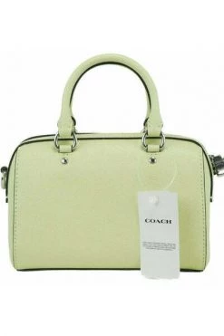 Stijl: Coach (C9950) Mini Rowan Crossbody Satchel (Pale Lime) Materiaal: CrossGrain Lederen Kenmerken: 2 binnenkaartsleuven, Zip Sluiting, Lined, Instelbare/Detachable Crossbody Metingen: 20,32 cm W x 13,97 cm H x 7,62 cm D D