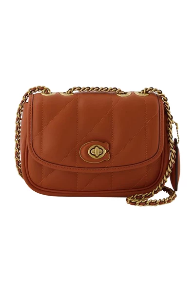 De kenmerkende Madison -tas van de coach is zo stijlvol als tijdloos. Deze gewatteerde kussenversie is een statement -stuk dat over de schouder- of crossbody -stijl kan worden gedragen – bovenop een blazer om op zijn preppy look te maximaliseren. De bovenste handgrepen veranderen in een schouderriem van 54,6 cm. Schoudertas – Een schouderriem. Materiaal: lederen nappa. Voeringstof. Kleur: Orange – B44 B4/Canyon. Sluiting: flap met turnkey clasp.