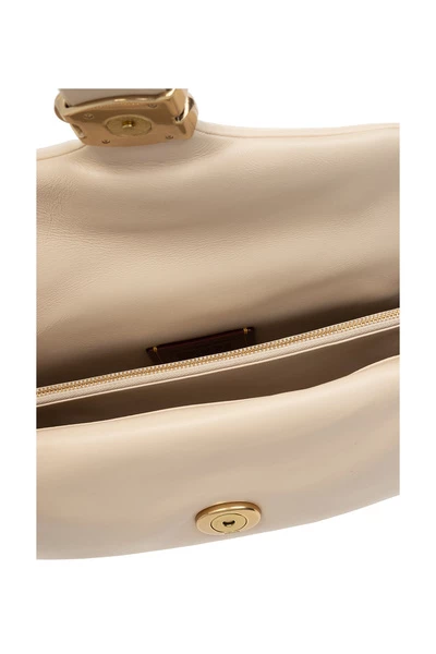 Beige The Pillow schoudertas van Coach. Dit ontwerp is gemaakt van leer en sluit met een magnetische sluiting en heeft een logo-applicatie, een verstelbare schouderriem, een bevestigde logo-charm en twee interne compartimenten met een ritsvak. Afmetingen: Hoogte: 15cm Breedte: 27cm Materiaal: 100% leer Productstijl-ID: C0772-0-B4-IY Deze beschrijving is automatisch vertaald.