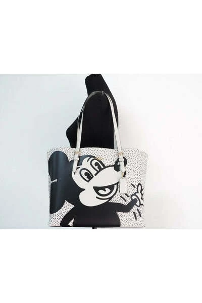 Stijl: Coach Mickey Mouse X Keith Haring Mollie grote draagtas (krijt) Materiaal: Dubbel gezicht leer en gepolijst kiezelleren Kenmerken: multifunctionele zak, zij open compartimenten, 10,25 banddruppel, verstelbare dubbele handgrepen Maten: 33,65 cm W x 27,94 cm H x 12,7 cm d