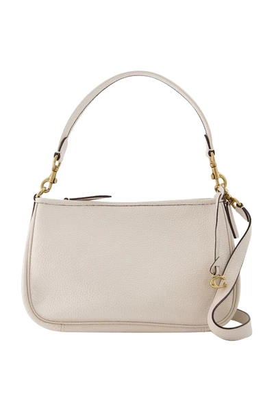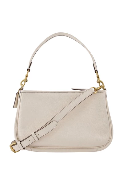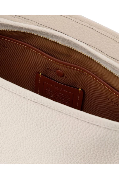 Schoudertas – Een schouderriem. Materiaal: korrelige kalfsleer. Voeringstof. Kleur: Blanc – B4/HA B4/krijt. Sluiting: bovenste zip.