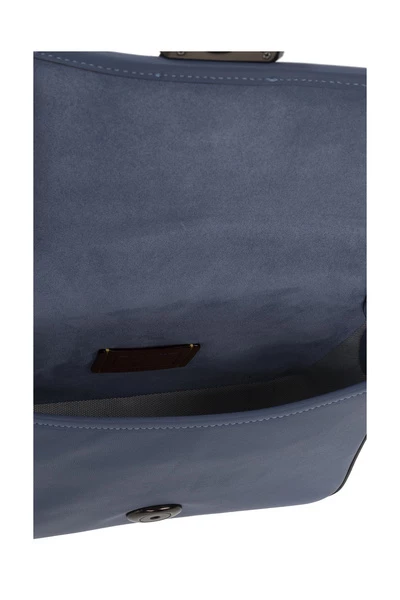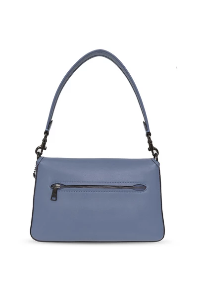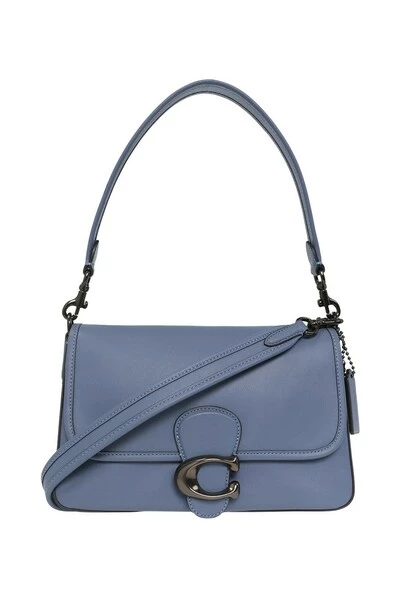 Blauwe ‘tabby’ schoudertas van coach. Gemaakt van koeienleer, dit ontwerp beveiligt zich met een magnetische bevestigingsmiddel met een logo-applicatie en heeft een achterste zak, een hendel met een halve ronde, een verstelbare schouderriem, zilverkleurige metalen hardware en een intern compartiment met een zipzak.