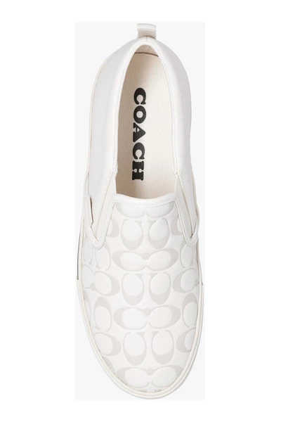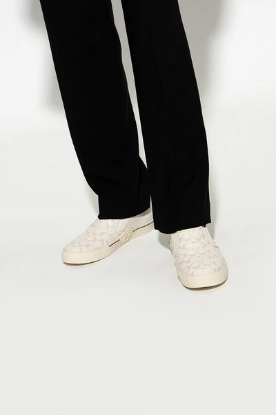 Crème ‘skate’ slip-on schoenen van coach. Gemaakt van leer, dit paar is compleet met een monogram, zwarte logo -print en merken rubberen zool in crème en zwart.